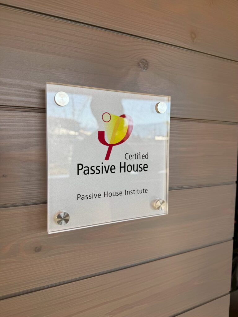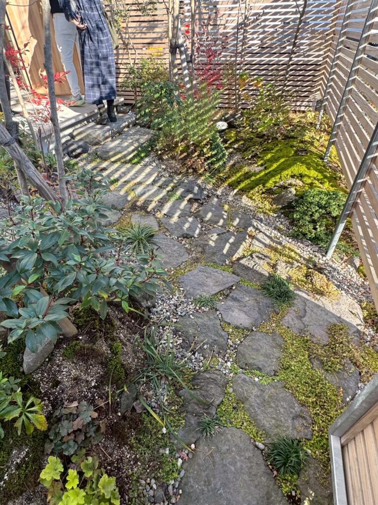 そして、換気は天井と断熱層の間で計画され、基礎にはグリッドポスト工法を採用するなど、全体として合理的に整理された構成となっていました。天井高さは2300ミリに抑えられ、過不足のない空間スケールが丁寧に設計され、さらに庭を含めた一体的な計画により、外部環境も含めた住環境の質を高めています。加えて、パッシブハウス申請の有無に関わらず、その費用を顧客負担としない点から、